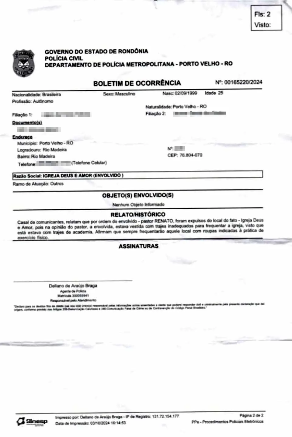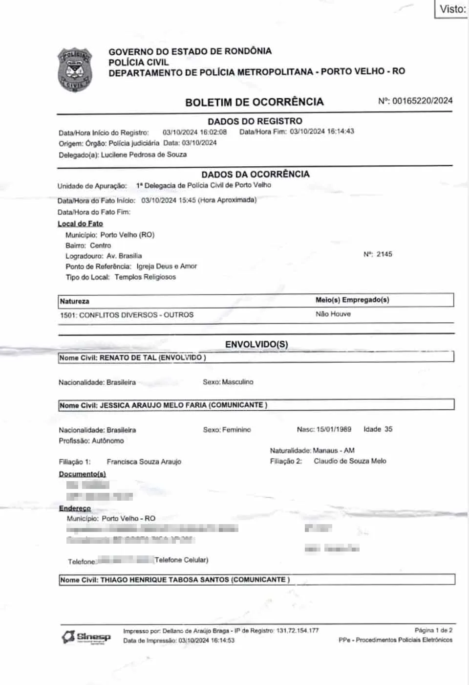 O Informa Rondônia tentou contato com o pastor Renato Lemos, mas, até o fechamento da reportagem, não obteve êxito. O espaço está aberto para eventuais manifestações.
