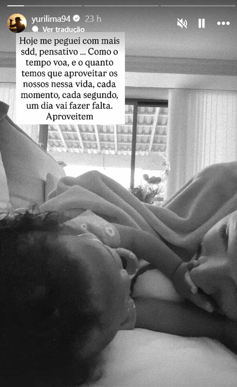 Yuri Lima, por sua vez, tem compartilhado em suas redes sociais momentos de convivência com a filha. Em uma das publicações mais recentes, o ex-jogador escreveu uma reflexão sobre o tempo e a importância de aproveitar cada instante com os filhos: “Hoje me peguei com mais saudade, pensativo. Como o tempo voa e quanto temos que aproveitar os nossos nessa vida. Cada momento, cada segundo. Um dia, vai fazer falta. Aproveitem”.