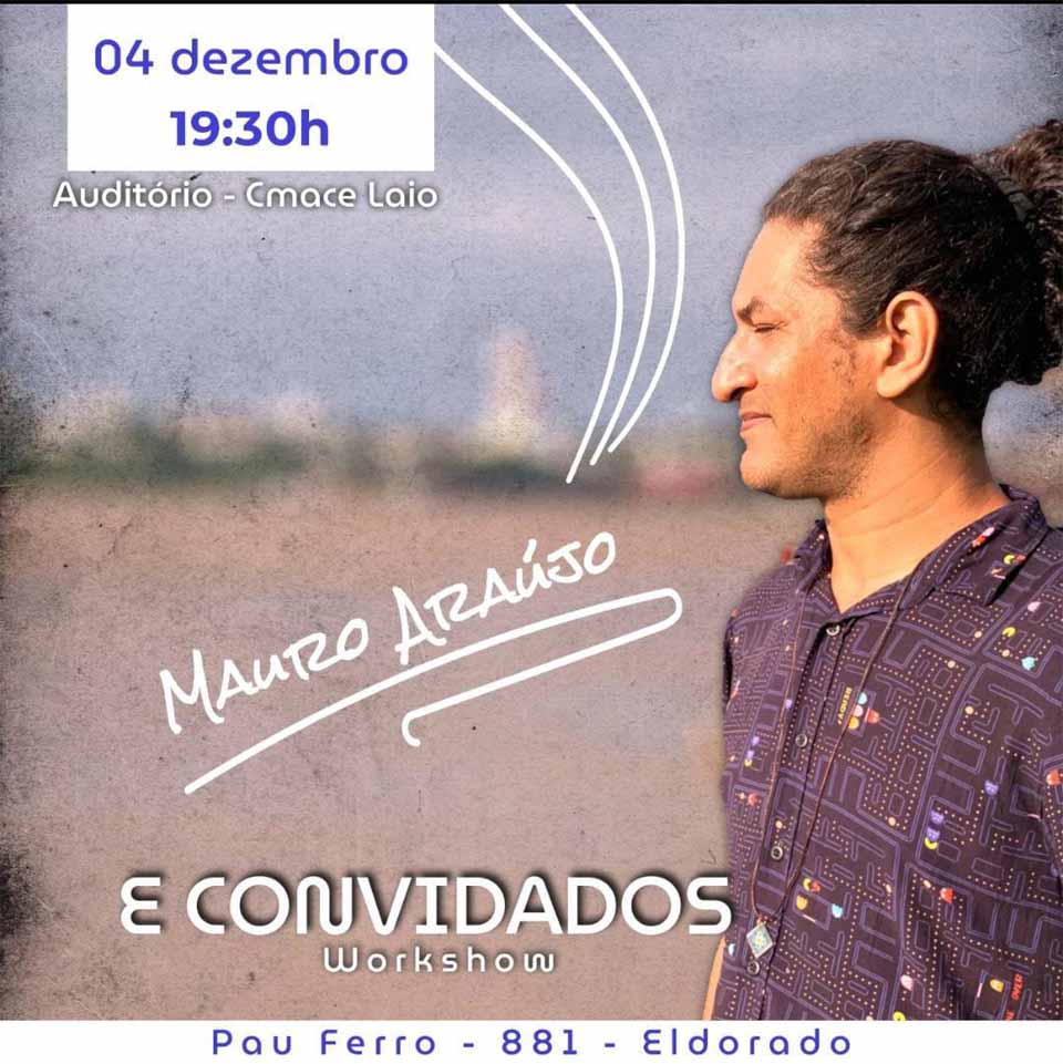 Porto Velho, RO – O workshow do músico Mauro Araújo está programado para ocorrer no dia 4 de dezembro, às 19h30, no auditório do Centro Municipal de Arte e Cultura Escolar Francisco Lázaro dos Santos – Laio (CMACE Laio). A divulgação informa a participação do músico ao lado de convidados, com apresentação no endereço Pau Ferro, 881, bairro Eldorado, zona Sul da Capital.
