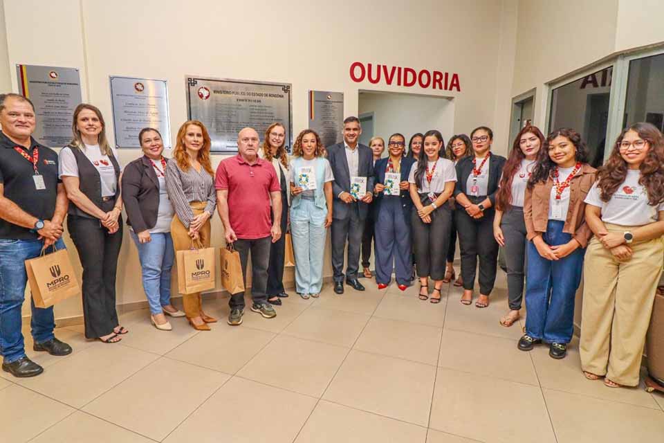 A solenidade ocorreu no próprio espaço da Ouvidoria, com a presença do Procurador-Geral de Justiça, Alexandre Jésus de Queiroz Santiago; da Ouvidora, Procuradora de Justiça Andréa Luciana Damacena Ferreira Engel; do Procurador de Justiça Carlos Grott; e das Promotoras de Justiça Rosângela Marsaro Protti (Saúde), Daniela Nicolai de Oliveira Lima (Consumidor) e Alba da Silva Lima (Infância e Juventude).