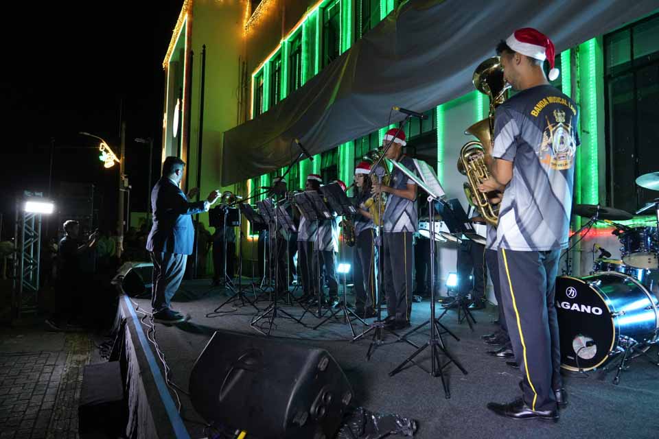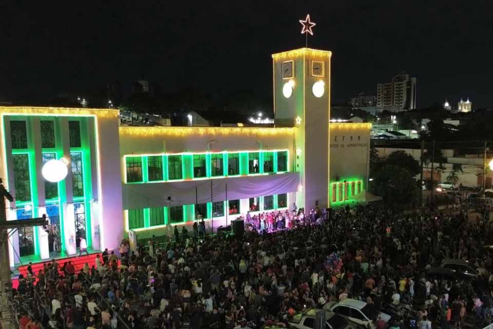 Porto Velho, RO – A primeira Cantata de Natal promovida pela Prefeitura de Porto Velho foi realizada no domingo (8) no Prédio do Relógio, sede do Executivo Municipal, reunindo milhares de pessoas ao longo da noite. A atividade levou ao edifício da Madeira-Mamoré apresentações conduzidas por crianças e jovens que integram projetos de música da rede municipal.