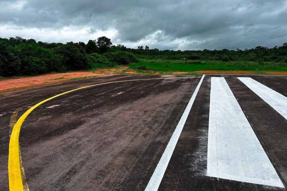 Intervenção conduzida pelo DER-RO atualiza a marcação horizontal da pista para atender normas da ANAC e ampliar a segurança em pousos e decolagens