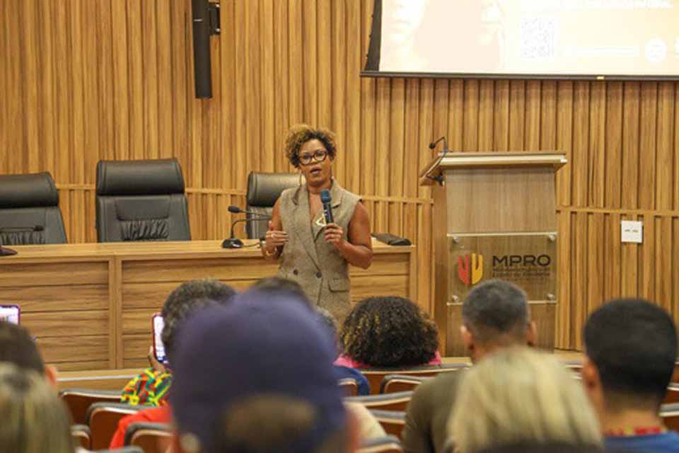 A palestra “Crimes de Gênero, Direito Antidiscriminatório e Feminicídios sob a Perspectiva da Mulher Negra” foi ministrada pela advogada e influenciadora digital Fayda Belo, especialista em crimes de gênero e direito antidiscriminatório. A iniciativa foi promovida pelo MPRO em parceria com a Comissão de Equidade de Gênero, Raça e Diversidade (Comissão EGRD) e resultou da articulação com a Ouvidoria das Mulheres, o Núcleo de Atendimento às Vítimas (Navit), a 35ª Promotoria de Justiça da Capital, o Gaeciv, o Gaeduc, o Comitê Gestor da Política Interinstitucional de Equidade de Gênero, Raça e Diversidade, além do TJRO, TRT da 14ª Região, MPT RO/AC e Rede Lilás.