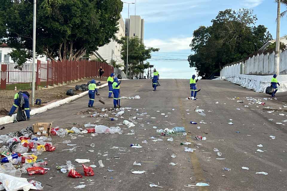 A atuação foi realizada por equipes de limpeza urbana vinculadas à Secretaria Municipal de Infraestrutura (Seinfra), com apoio de profissionais da empresa terceirizada MB. A mobilização ocorreu logo após o término do evento, quando a desmontagem das estruturas começou e o público deixou o local de forma tranquila. Ambulantes também passaram a recolher seus materiais para liberar completamente a área.