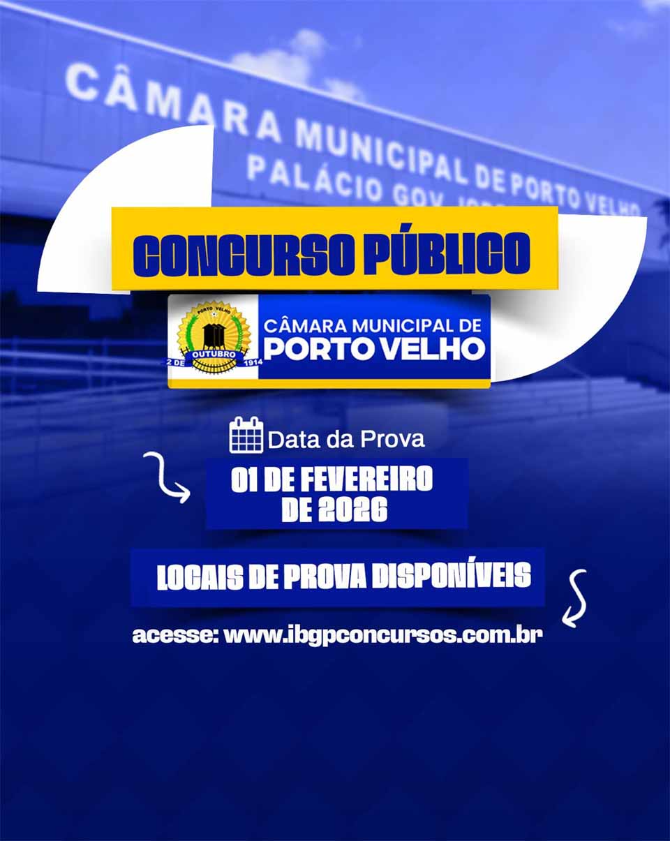Porto Velho, RO – Já está liberada para consulta a informação sobre o local de aplicação das provas do Concurso Público da Câmara Municipal de Porto Velho, regido pelo Edital nº 01/2024, com avaliações previstas para este domingo. O acesso aos dados deve ser feito exclusivamente pelo Portal do Participante, mantido pela banca organizadora IBGP.