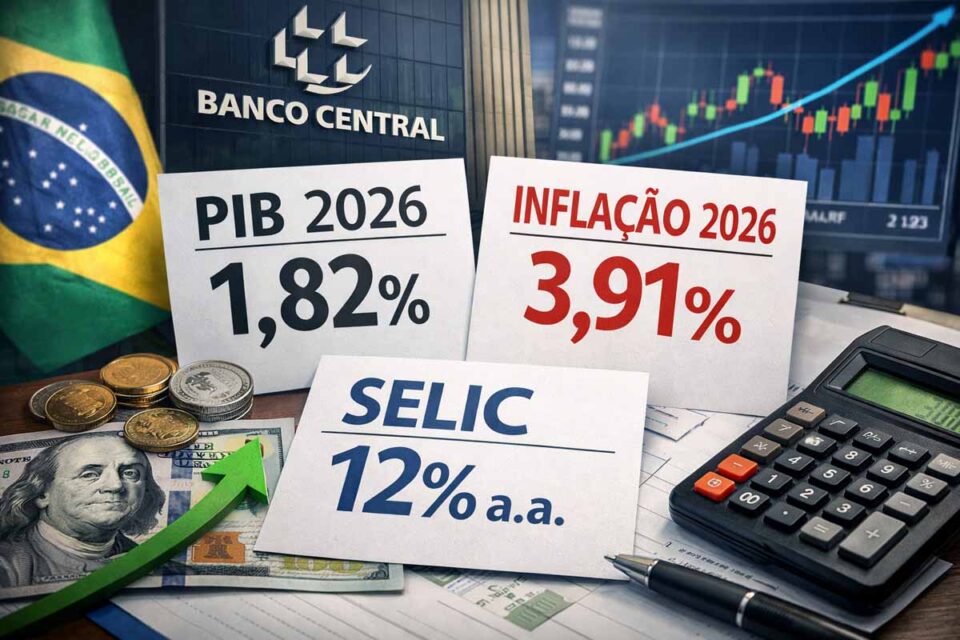 As projeções para o crescimento econômico também permaneceram estáveis. A expectativa do mercado para o Produto Interno Bruto (PIB) em 2026 foi mantida em 1,82%. Para 2027, a previsão é de expansão de 1,8%, enquanto para 2028 e 2029 a estimativa aponta crescimento de 2% ao ano.