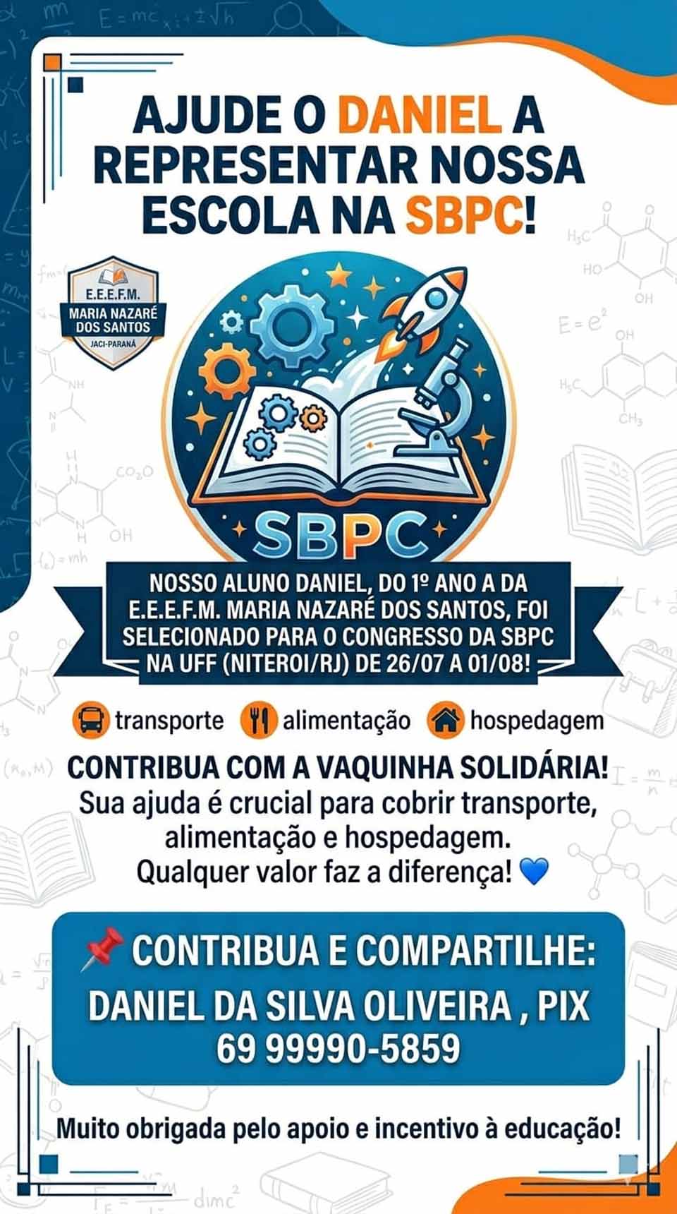 Porto Velho, RO – A seleção do estudante Daniel da Silva Oliveira, do 1º ano A da EEEFM Maria de Nazaré, em Jaci-Paraná (RO), para apresentação em um dos principais eventos científicos do país marca um avanço significativo para a comunidade escolar.