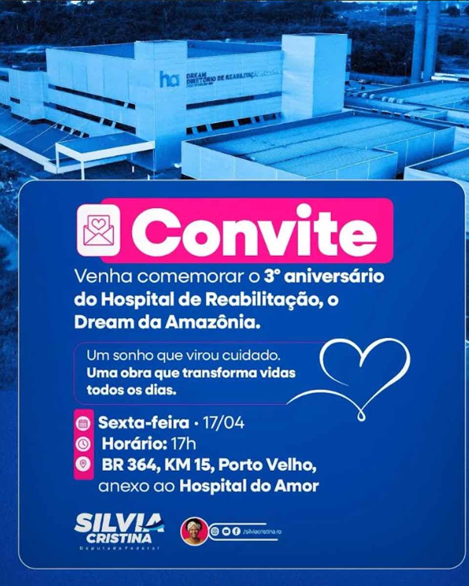 Ao comentar a data, Sílvia Cristina destacou o papel da estrutura na assistência aos pacientes e reforçou o convite para a cerimônia. Segundo ela, trata-se de um momento de celebração pelos resultados alcançados ao longo dos três anos de funcionamento do espaço, que, conforme afirmou, foi concebido para oferecer atendimento moderno e especializado.