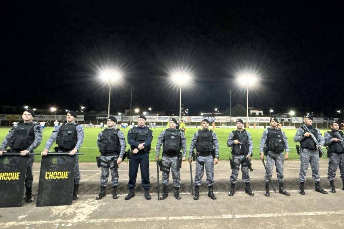 Policiamento do 10º Batalhão foi realizado durante confronto entre Guaporé e Ji-Paraná, com patrulhamento e controle de acesso no estádio municipal.
